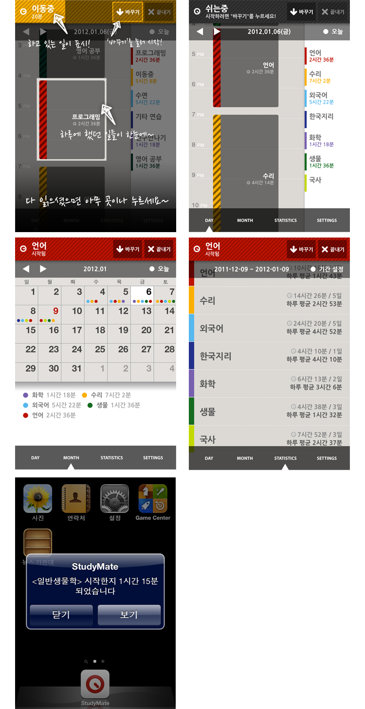 과목별로 얼마나 시간투자를 하는지 확인이 도움이 되기도 해서 만들었었다.